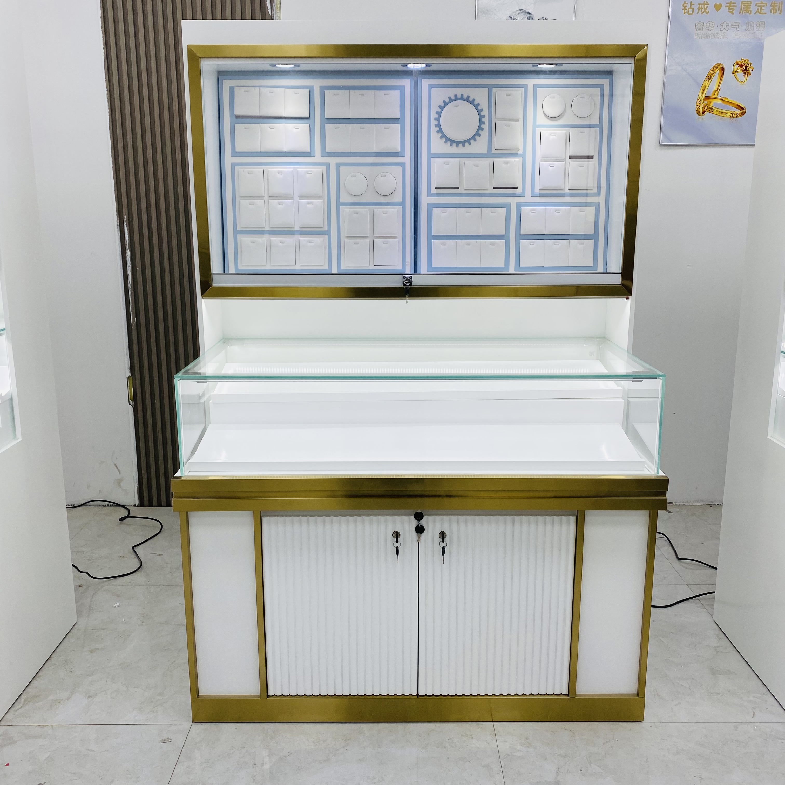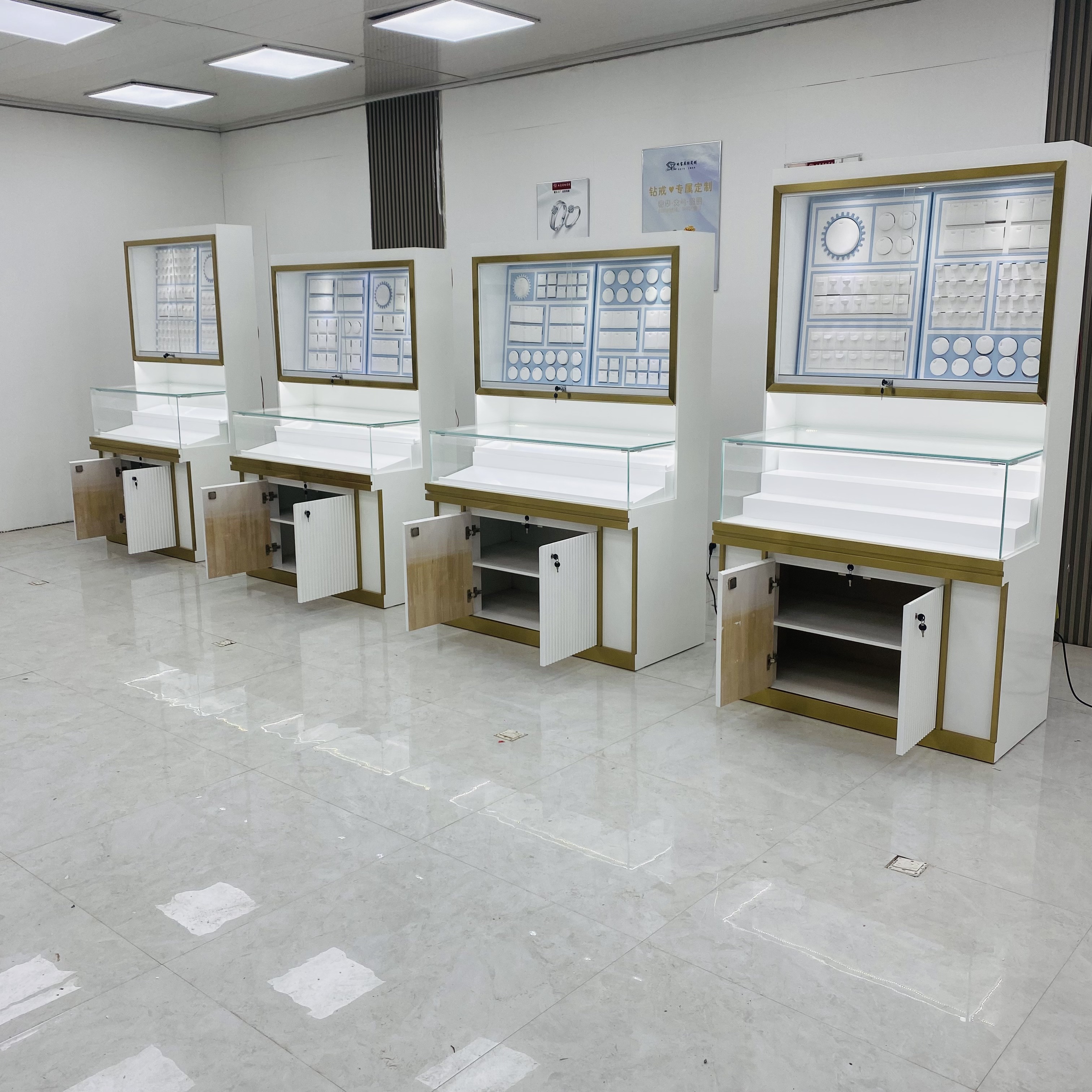 En las joyas, las elegantes gabinetes de exhibición de joyería de artesanía son el equipo preferido para exhibir joyas de alta gama, diamantes, jade y otras joyas preciosas. Su alta transparencia puede mostrar claramente los detalles y el brillo de joyas, lo que permite a los clientes apreciar intuitivamente la belleza de las joyas. Al mismo tiempo, el sistema de iluminación y las medidas de protección de seguridad equipadas dentro del gabinete de exhibición pueden mejorar la experiencia de compra del cliente y garantizar la seguridad de las joyas.