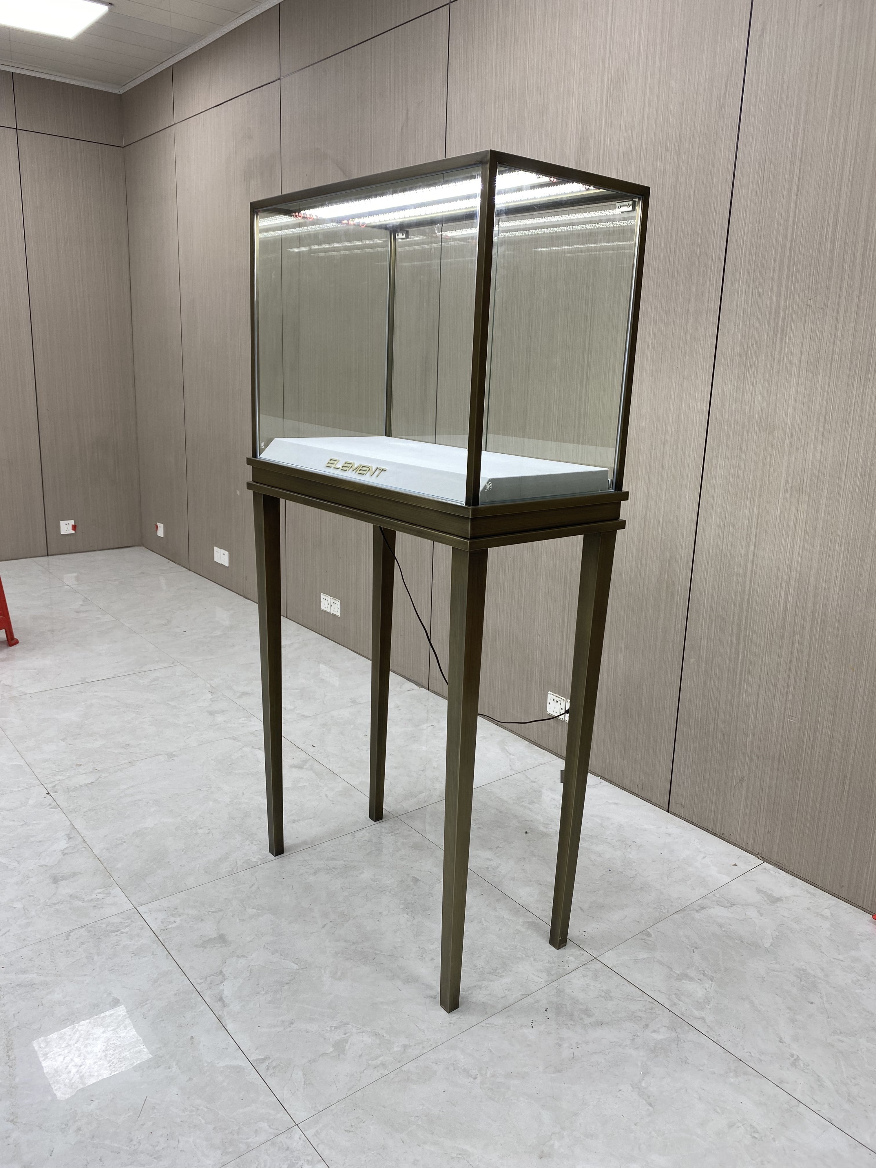 En resumen, un gabinete de exhibición de joyas de bronce es una opción versátil y sofisticada para exhibir joyas valiosas en una variedad de entornos. Su tono rico y cálido y su construcción resistente lo convierten en una opción ideal para boutiques de alta gama, galerías de arte, grandes almacenes y suites de hoteles de lujo. Ya sea que se use para mostrar una colección personal o atraer clientes en un entorno comercial, un gabinete de exhibición de joyas de bronce agrega un toque de elegancia clásica y proporciona una plataforma segura y visualmente atractiva para exhibir tesoros delicados y valiosos. Su diseño atemporal complementa cualquier ambiente, creando un telón de fondo perfecto para apreciar la belleza y la artesanía de las joyas finas.