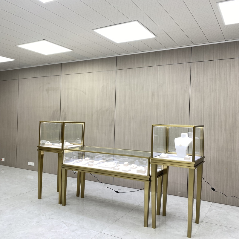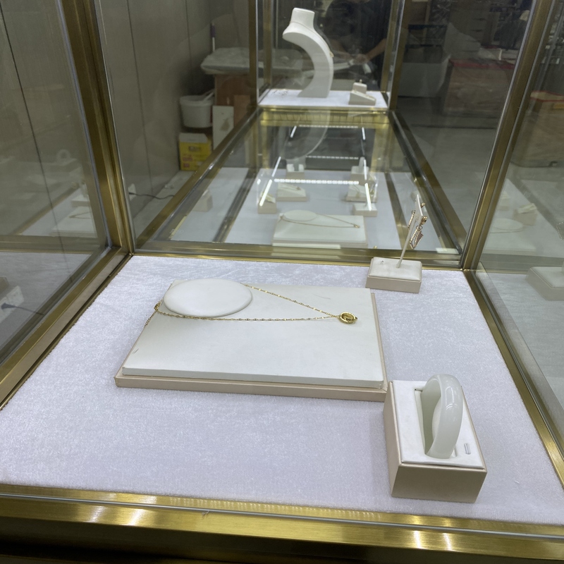 La compañía tiene productos de gabinete de exhibición de joyería de seta de titanio.