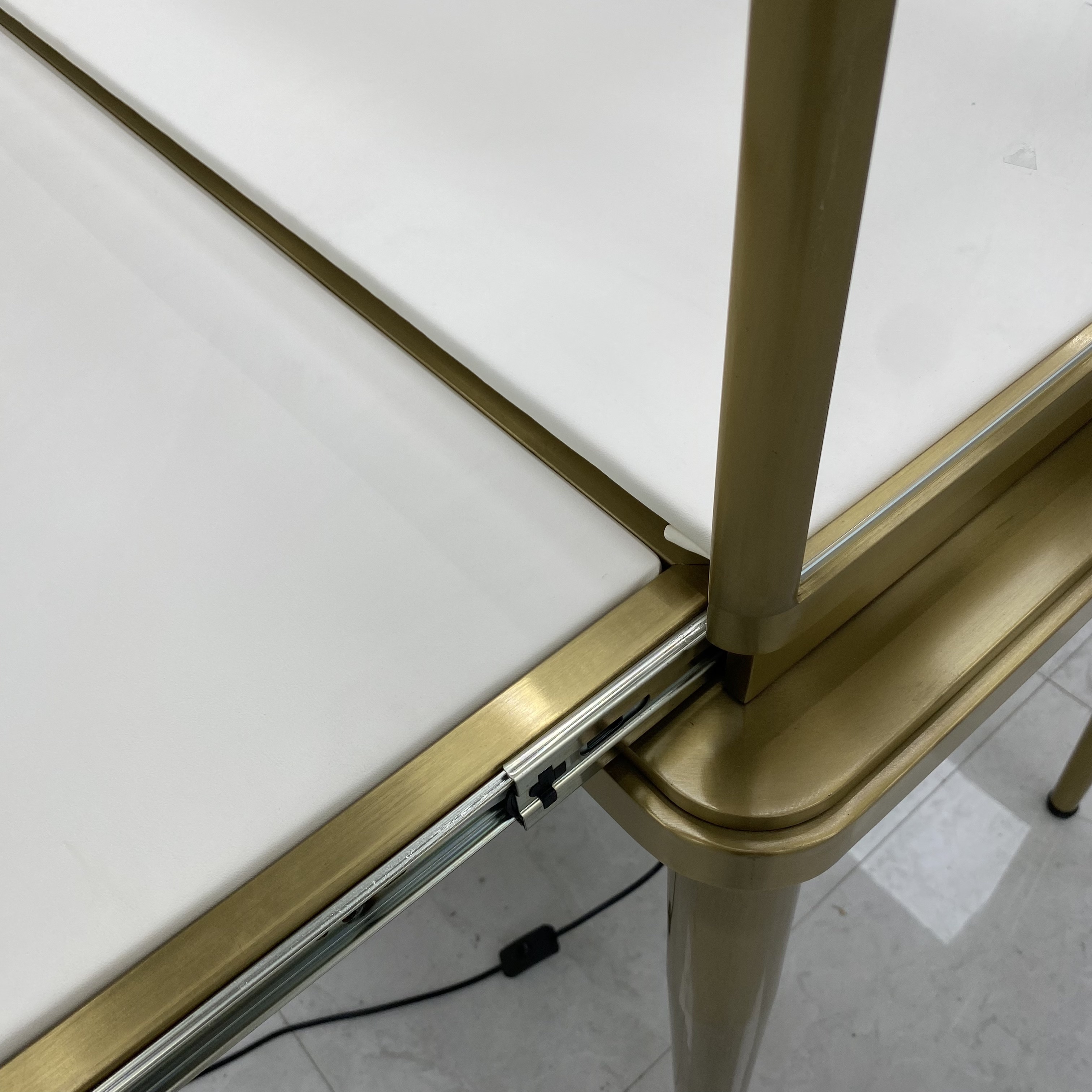 El gabinete de exhibición de joyas en forma de abanico está elaborado con meticulosa atención al detalle, asegurando que sea resistente y visualmente atractivo. Los materiales y acabados de alta calidad garantizan una durabilidad duradera y una apariencia exquisita.