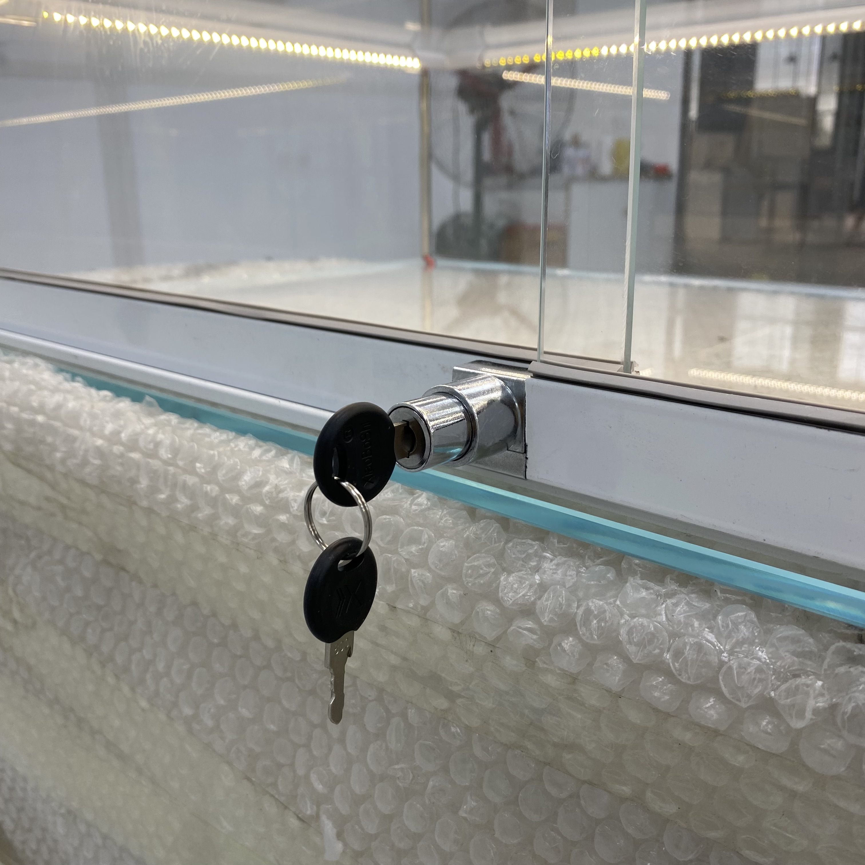 Con la seguridad en mente, el gabinete de exhibición de pan de vidrio cuenta con paneles de vidrio templado que resisten la ruptura y los pestillos robustos para asegurar sus productos horneados. Algunos modelos también pueden incorporar dispositivos antideslizantes para evitar el volcado accidental, asegurando la seguridad de sus productos y su espacio.