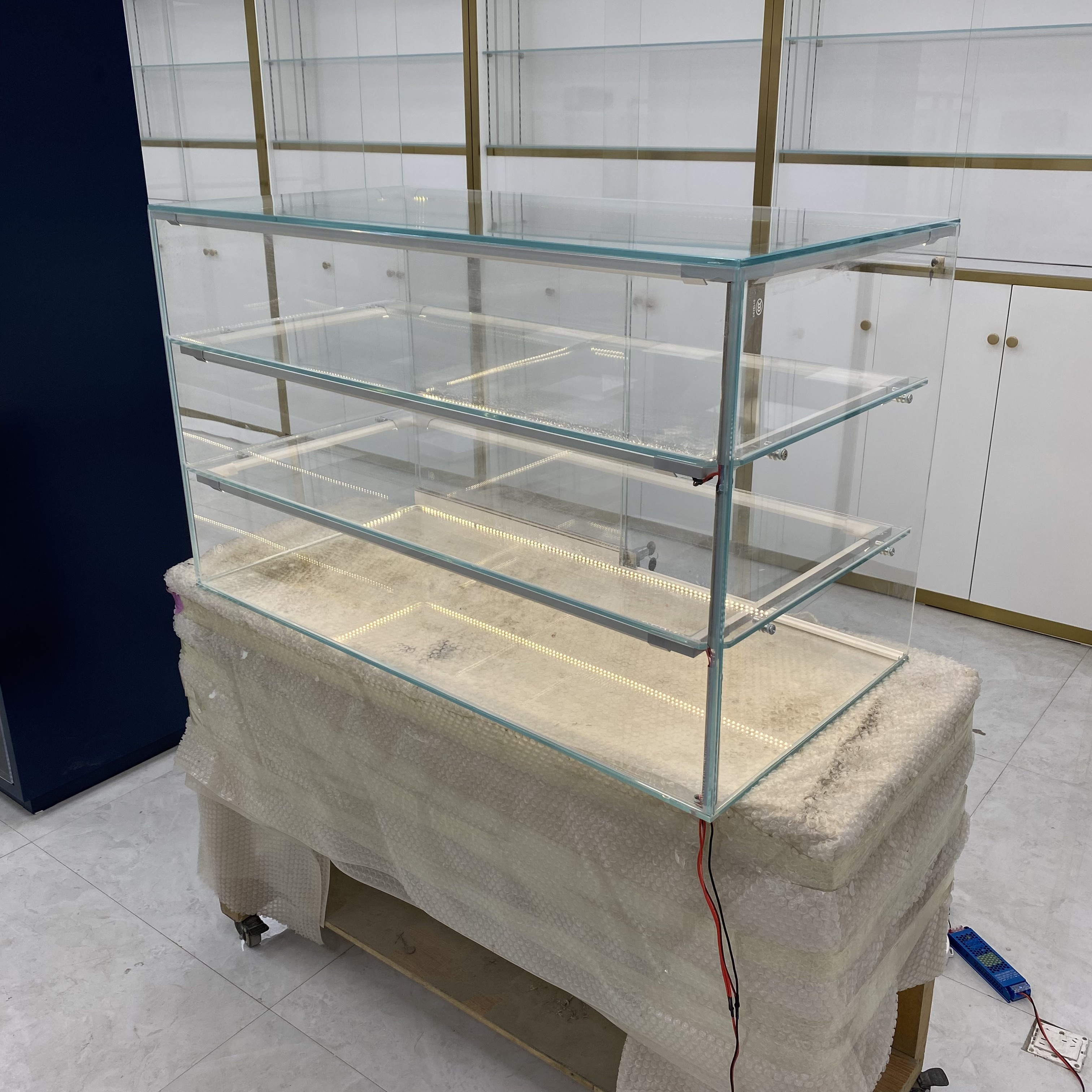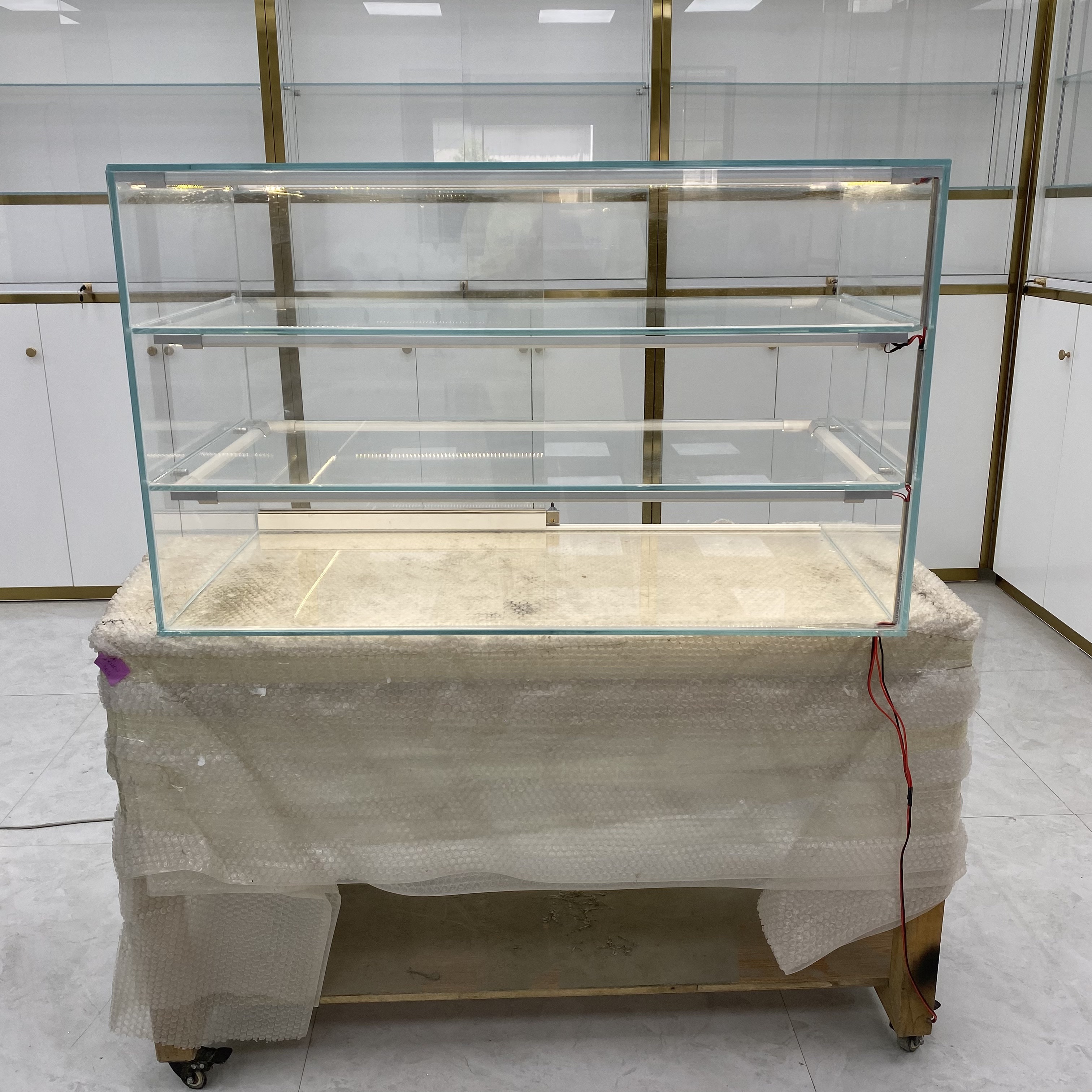 Presentando el gabinete de exhibición de pan de vidrio puro, una obra maestra de transparencia y elegancia. Hecho completamente hecho a partir de vidrio, ofrece una vista incomparable de sus deliciosos pasteles y panes. Este gabinete no solo protege sus artículos de panadería, sino que también mejora su atractivo visual, invitando a los clientes a saborear el aroma y el sabor de la frescura. Bienvenido a una nueva era de exhibición de panadería.