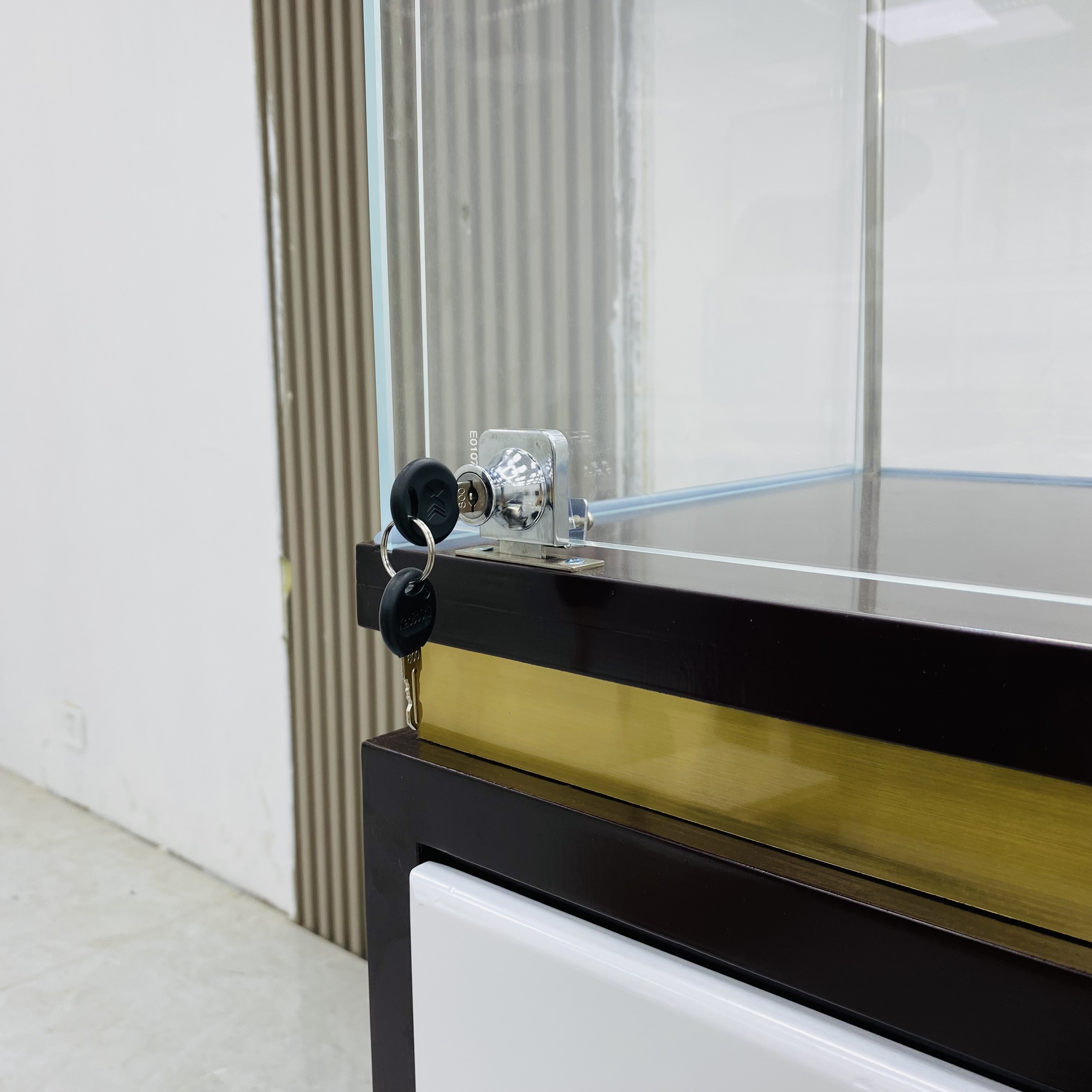 Equipado con una tira de luz, este gabinete ilumina sus artículos mostrados maravillosamente, creando un efecto visual llamativo. Ya sea para una tienda minorista, exhibición o colección personal, este gabinete de exhibición de vidrio seguramente mejorará la presentación de sus artículos al tiempo que agrega un toque de elegancia a cualquier espacio.